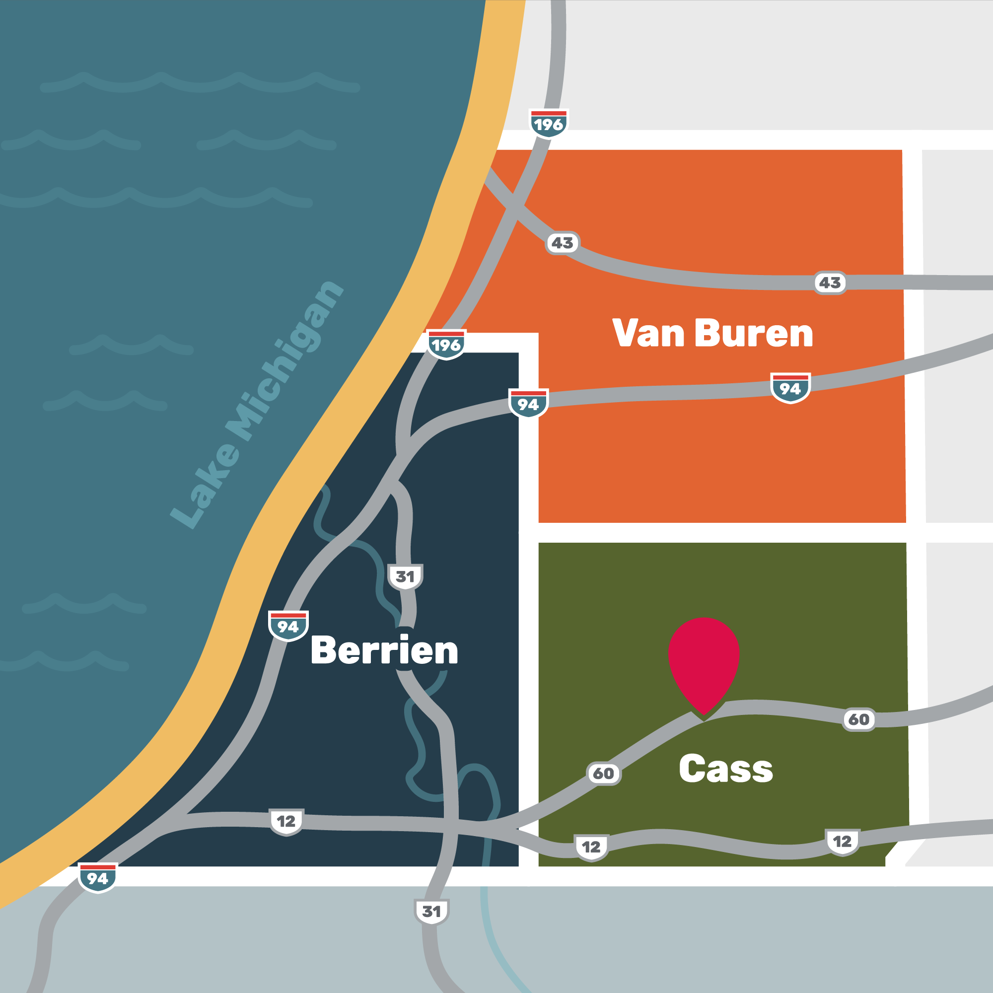 Take a personalized, immersive tour of Berrien, Van Buren, or Cass County and discover their charms.